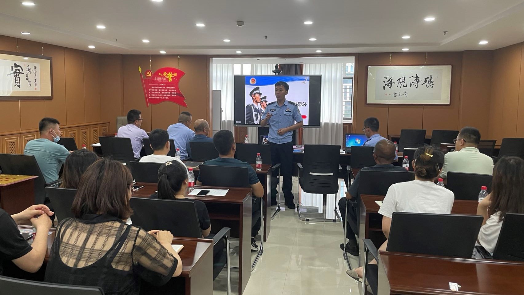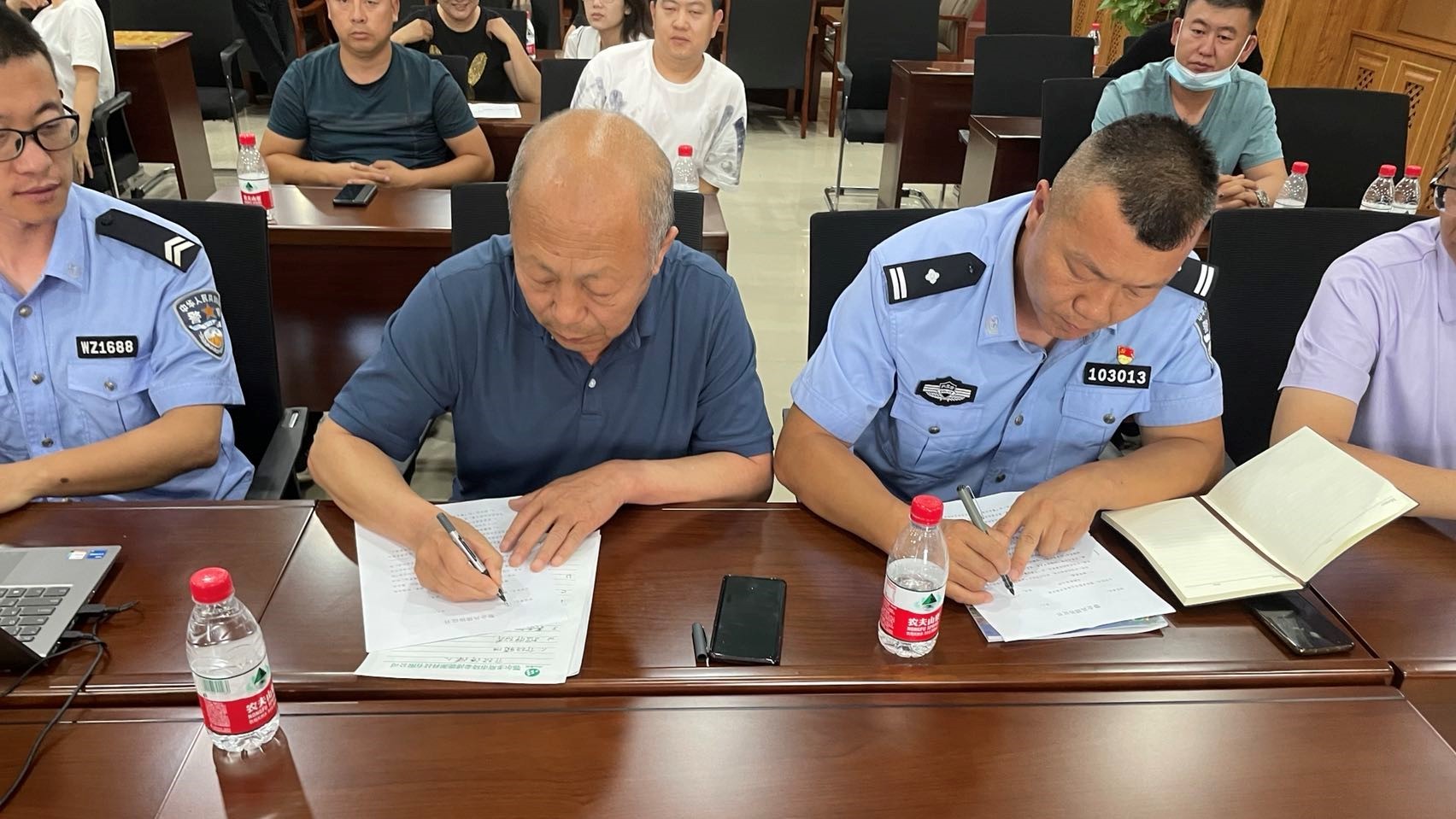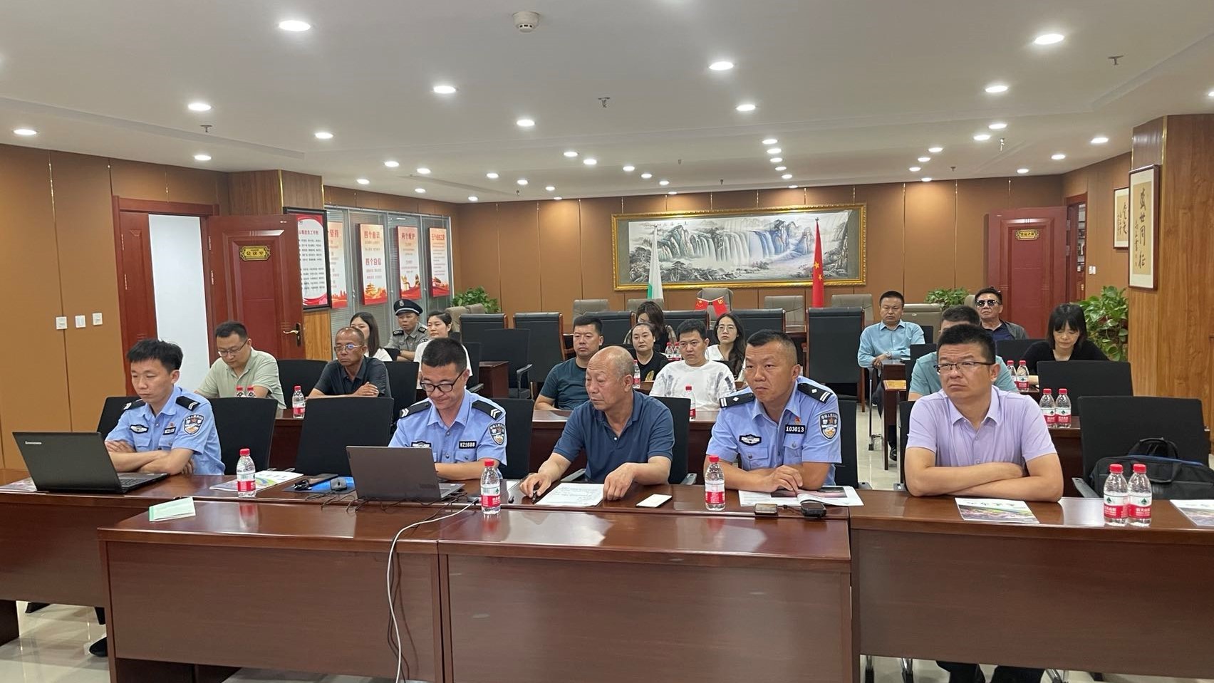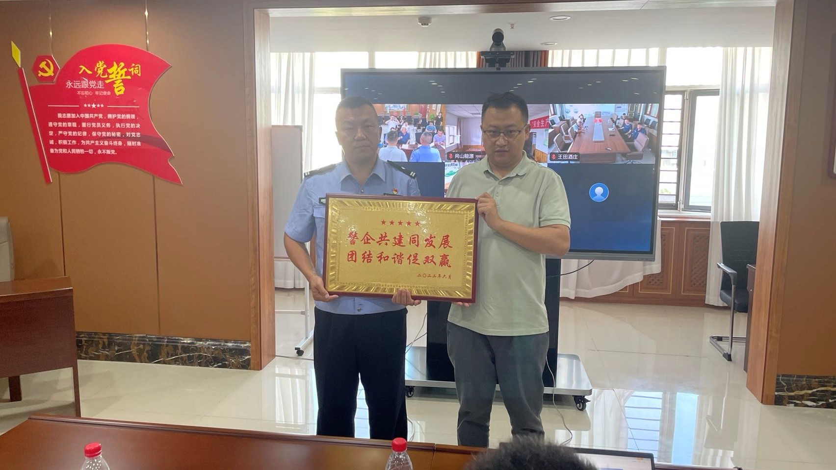 为提升公司员工在工作中应对风险的能力,增强员工安全防范意识,2022年6月27日,公司特邀鄂尔多斯市公安局东胜区分局天骄路派出所民警对公司员工进行安全培训,同时签订警企共建协议,并举行”警企共建同发展,团结和谐促双赢“授牌仪式。